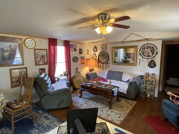 Manufactured home ready for new owner! This home has 2 bedrooms and 2 bathrooms, great covered front porch and split bedroom design. Peace, quiet and natural beauty abound on this level lot of nearly 2 acres. Home also has new metal roof and new hot water heater.