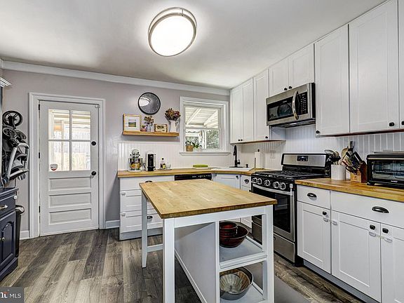 Absolutely charming three bedroom home in the heart of Hampden with exceptional updates throughout. Fantastic location close to Hampden Avenue and everything you could want including an excellent array of dining, shopping, entertainment options, I-83, Woodberry Light Rail and the best that Charm City has to offer! Enjoy a morning cup of coffee or an evening cocktail on the front porch with custom flooring and a ceiling fan for the warmer days. The main level highlights an open floor plan with a neutral color theme, sun-filled windows, and hardwood floors. Prepare your favorite meals in the eat-in kitchen that is fully equipped with stainless steel appliances with gas cooking, 42" shaker style cabinets, accent backsplash, butcher block counters and luxury vinyl plank flooring. Upstairs features three spacious bedrooms and an updated full bathroom with a ceramic tile tub shower. The lower level awaits your finishing touches and provides endless storage. A convenient parking pad in the rear so you never have to worry about finding a parking space. Recent upgrades include: gas water heater (2022), gas line from street into house (2022), ductless mini-split central a/c (2021), electrical panel (2021), kitchen completely renovated (2018), upper level bathroom remodel (2018), insulated vinyl front door (2017), new double hung vinyl insulated windows (2017), hardwood floors refinished (2016), new asphalt shingle roof with ten year transferable warranty (2016).