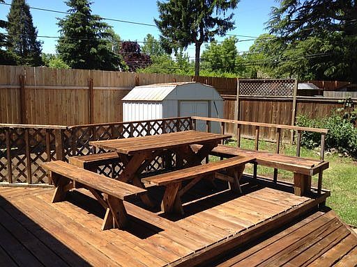 This home has hardwood floors and carpeted floors. Two bedrooms are upstairs and two are down. Additionally there is a large family room with pellet stove and outside the yard is fenced. There is also a small studio in the back yard.