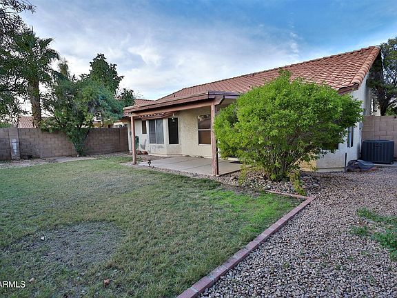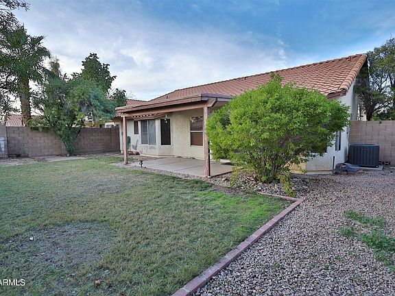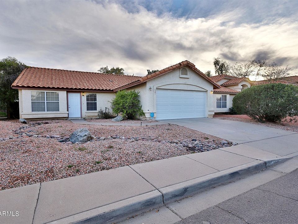 Great home in very nice neighborhood. Excellent open floor plan and newly updated laminate flooring (no carpet). 2 car garage well lit with handyman work bench & storage cabinets. This home has great flow and feels much larger than the square footage. 3 bedrooms plus den or 4th bedroom opening to living room and hallway. Attic ventilation for lesser energy consumption during summer. French doors open to backyard for open feel. Low maintenance gravel front with grass backyard for kids or pets. Next to park with basketball court, volley ball, children playground. Walking distance from Chandler Family YMCA. SEE PHOTOS & VIDEO. **Kitchen Stove will be replaced**