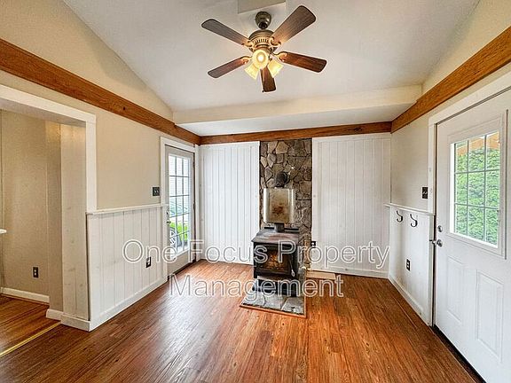 This delightful single-family home will welcome you with warmth and comfort the moment you step inside. On the first floor, you have a moderately open floor plan that blends your living room, dining room, kitchen, and mudroom seamlessly. The kitchen offers ample counters and cabinets, a small breakfast bar that would be well-suited with high stools, and a broad leadway into the mudroom. There you have a non-working woodstove that can easily be dressed up in several ways to add some additional style. This leads to the driveway and the backyard, where your green space and patio are. There is also access to the unfinished, but cozy and neat, basement. Upstairs, you are greeted by your first bedroom that would be well-suited with a queen bed and dresser. Next is the full bathroom that also doubles as the laundry room with provided machines. Last but not least is your master that can house a king bed and additional furniture. There is also access to the attic where you have open storage space for whatever your needs may be.