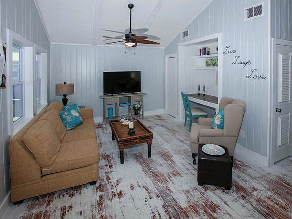 Completely Remodeled from Top to Bottom with Unique Features. Gorgeous Beach Cottage Is Complete with Custom Finishes Throughout Offering a New Home Feel. Features Include Granite Countertops, Appliances, Gravel Driveway, Metal Roof Custom Cabinetry, Upgraded Fixtures, Distressed Wood Floors, Vaulted Ceiling with Exposed Beams, Custom Built in Alcove and Desk in Living Room, Outdoor Shower, Downstairs Storage Area Can Be Converted to A Man Cave, Spacious Private Covered Back Patio Offers Awesome Views of The Gulf - Perfect for Entertaining, Front Patio Accessed from Master Bedroom Overlooks the Lagoon. Cottage Sits on Large Lot (50 X 249) Perfect to Add on To House or For Big Pool and Still Have a HUGE Backyard. Prime Location Just a Block and A Half from Beach, Restaurants, Festivals and More. Don't Miss Your Opportunity to Own a Piece of Paradise. Turn Key and Rent Ready. Home Sold Fully Furnished with Unique One of a Kind Distressed Furniture for A True Coastal Beach Feel