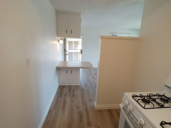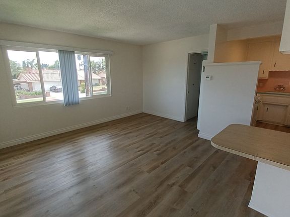 UPPER, FRONT UNIT WITH VIEW & PLENTY OF NATURAL LIGHT - 1 CAR Parking, NEW wood laminate/SPC flooring, new luxuriant carpet in bedroom, new A/C & heater, new ceiling fan, dual paned windows, new vertical blinds, includes built-in dinette set & wardrobe, and new oven-range. WALKING DISTANCE to ANAHEIM PLAZA which includes In-N-Out Burger, Wal-Mart, Burlington, Rubios, Subway, Old Navy, TJ Maxx, Ulta, FashionQ, and BofA. Also WALKING DISTANCE to Circle K, El Super Grocery Store, Wendy's, Smart & Final, Ranch 99 Groceries, Starbucks, Jolli Bee, and Chase. Not far from Anaheim City Center, Packing House, & Disneyland. Easy access to I-5 and 91 Freeways. Owner pays water. Tenant pays electricity, gas and trash. $35 credit check fee. SUV's, Vans & Large Pick-up Trucks will NOT fit in parking space. Phone number does not accept texts. CALL FOR AN APPOINTMENT.