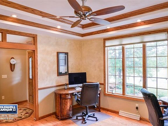Custom built home with great curb appeal. Enter from a large foyer with hardwood floors the leads to an office. Large living room with gas fireplace and a huge wall of windows lets tons of sunlight in. Dining area offers patio doors out to a deck. Kitchen offers tons of cabinetry, built in serving buffet, walk in pantry and full appliance package. Main floor master offers its very own retreat with a private deck that leads to an outdoor hot tub. Private bath with dual vanities, whirlpool tub and walk in closet. First floor laundry with lockers and half bath completes the main level. Upstairs is 3 bedrooms, bonus room and full bath. Lower level is finished to include a rec room with gas fireplace, additional bedroom and full bath. Attached garage with basement access and extensively landscaped yard.