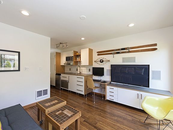 Tastefully done 270 sf Tiny home on R3 lot with development potential. Bamboo floors, stovetop, fridge, dishwasher, & microwave. Built-in Queen Bed & full Bath with subway tile. 498 sf High-end heated, insulated, well-lit garage with washer hook-up, a perfect place to organize & store all your toys or an awesome workshop. Camaru wood & metal siding, nice deck & privacy fence. Perfect 2nd home vacation getaway. Includes W/Dryer.