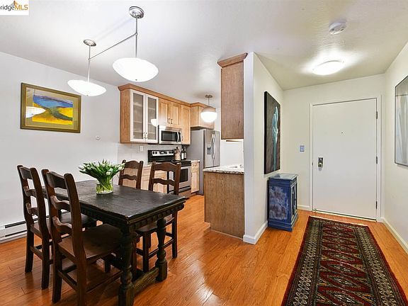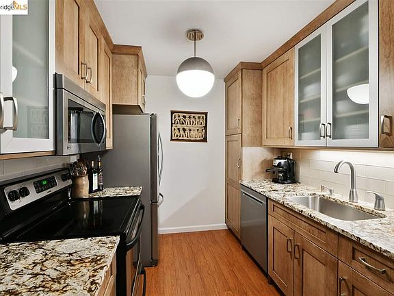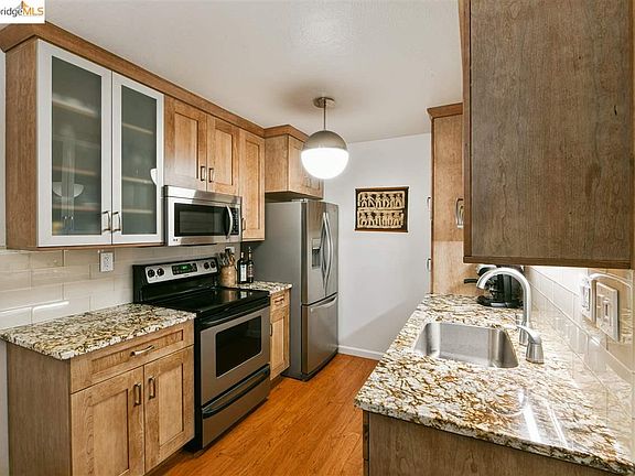 Sunny and updated spacious corner unit condo is located in the desirable Park Webster complex in the West End of Alameda. Located steps away from Crab Cove this unit boasts an updated kitchen with granite countertops, high-end cherry wood cabinets and SS appliances; Prestige Cherry Pergo flooring throughout; and a private balcony overlooking the beach, with filtered views of the bay. With a Walkscore of 83 and Bikescore of 86, there is easy access to the bustling Webster street corridor and beyond with shops, restaurants and Transbay bus. Community amenities include a private security gate, pool, gym, laundry facilities and a tranquil courtyard complete with a koi pond. Deeded parking space and a large additional storage unit located right across the hall from the unit. Crown State Beach is just outside the complex gate and all the wonderful restaurants and shopping that Alameda has to offer is just steps away.