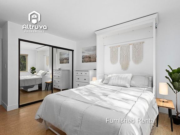 Relax on a hammock with bay views or enjoy a sunset walk on the beach. This stunning condo has beach and picnic access. Alexa is here to serve you in this hip, high-tech smart home: tell her to turn on mood lighting and play a soothing playlist in one room, or play AppleTV on the home theater in the living room. The fully-equipped kitchen has the creature comforts of home, like an induction cooktop, oven with air fryer, ice cream maker, juicer, mixer and waffle makers. The complex is packed with amenities galore: a gated pool, a large gym, and a dry sauna. Have peace of mind with safe gated designated parking for 2 cars in the garage. Bedroom 1 - Queen Bed Bedroom 2 - Queen Bed Bedroom 3 - Triple Bunk Bed * Beach access * Partial Bay Views * Easy Walkability to Cafes and Farmer's Market * Gated Designated Garage Parking for 2 Cars * Safe Gated Complex * Tenant pays $200 per month for utilities and internet * Flexible lease periods of 1-10 months available. * One-time cleaning fee of $175 * Pets allowed with approval. Max 3 pets. Pet rent is $50-$100 per month per pet depending on size and type of pet. * 2 garage parking spaces * No smoking of any kind
