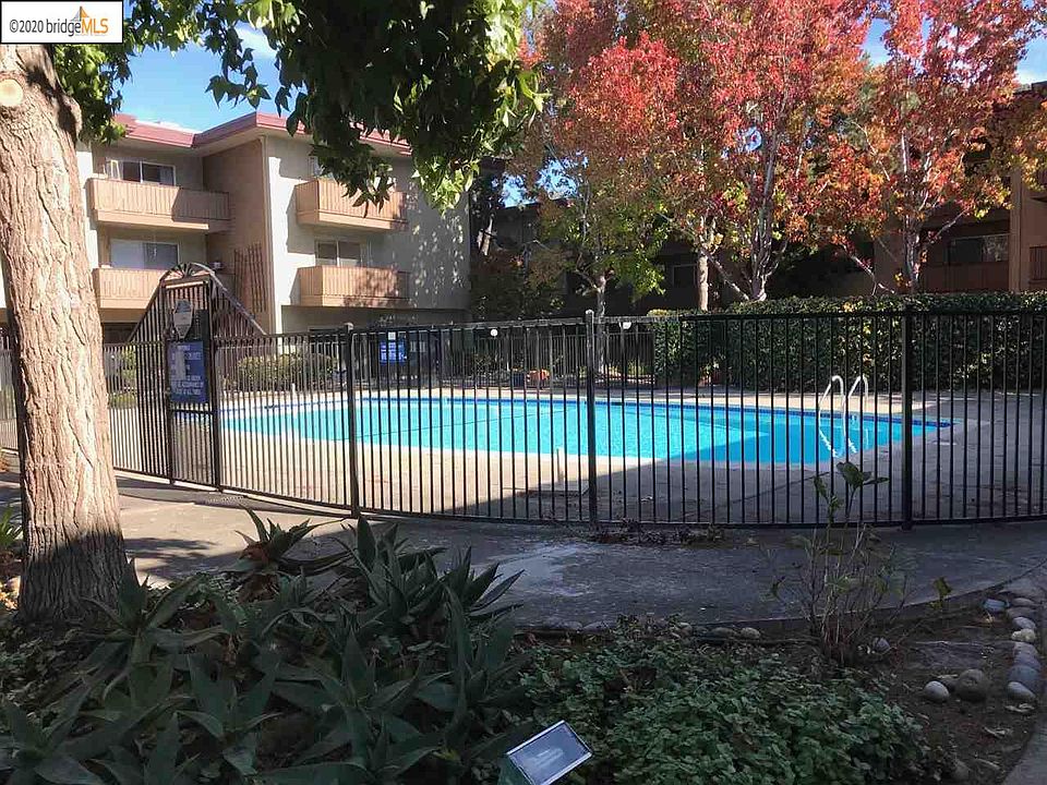 Bright and sunny end unit with balcony overlooking lagoon, wild life and swimming pool. Crab Cove/Crown Beach is just a few steps away as is shopping and restaurants. Lots of closets and storage. Granite kitchen with stainless steel appliances and separate pantry. Updated windows, beautifully styled fully tiled bathroom. Garage parking.