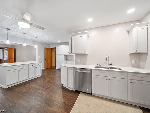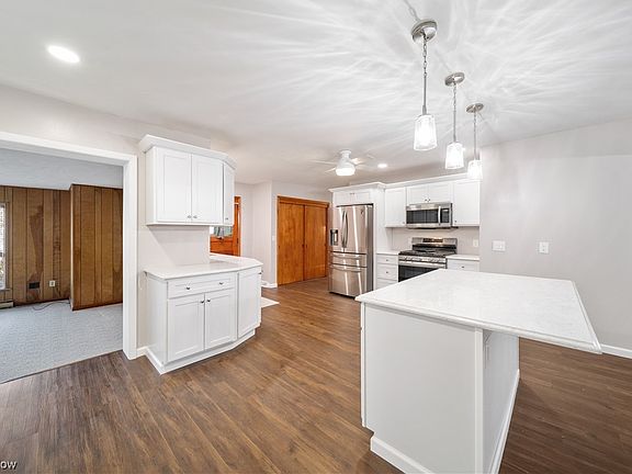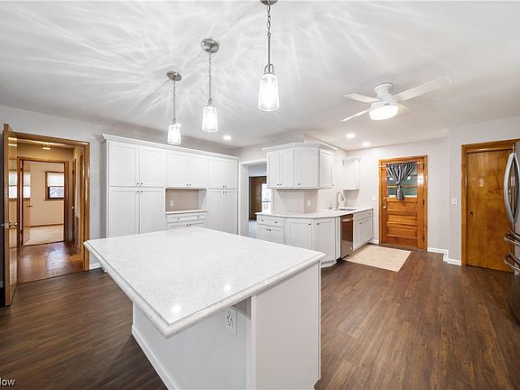 Main floor living in this large 2,430 sq. ft brick ranch home. Loads of updates include a brand new stunning white kitchen with quartz counter tops, coffee bar area,tons of cabinetry, center island, vinyl tile flooring and stainless appliances included. Open dining room off the kitchen. Living room features beautiful picture window, wood burning fireplace, vinyl tile and open foyer. Family room leads to a rear patio. 3-bedrooms, 2-full baths, main floor laundry room. A huge office with built-in book shelves or could be used as a 4th bedroom if needed. In addition to the gorgeous new kitchen - many newer light fixtures, newer breaker box 2021 and hot water heater 2021. Furnace was just serviced 11/2023 for the season. Custom window blinds in living and family room. Lots of storage through out plus attic storage, 2-car attached garage, concrete drive. All located on a double lot totaling .50-acre. Just down the street from Kent State University-Ashtabula, Saybrook Twp park and Lake Erie beach access is just 2 miles away.