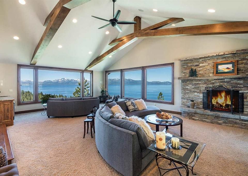 Spectacular updated home has unobstructed and captivating views of Lake Tahoe, Heavenly Valley and Sierra Nevada Mountains. Sunny .43 acre parcel adjacent to Forest Service land. The living room with fire place and wet bar has window walls that beautifully frame the lake vistas. The gourmet kitchen has custom designed cabinets, granite counters and 6 burner Wolfe range. 2 lake view Master Suites each have a fireplace, walk in closet and spaciously designed bathroom. 2 relaxing lake view entertainment decks.