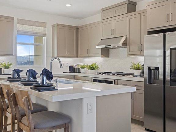 Brand new Lennar home located in the village of Rienda is Rancho Mission Viejo. Two bedroom both with ensuite baths + Flex Space (great for an office!). Gorgeous kitchen offers modern white shaker cabinetry, white quartz counter tops, stainless steel Samsung appliances including a Samsung smart refrigerator, breakfast bar with farmers sink. This open floor plan sits on a prime corner lot that provides an abundance of natural light. There is still time for the buyer to customize the flooring and kitchen backsplash. HOA offers an abundance of amenities including the 20,000 square foot lagoon pool, two gyms, farms, dog park, arcade, incredible Hilltop Club and the Rienda Plunge & clubhouse under construction within walking distance of the property. Enhanced Farmhouse exterior elevation. Completion September 2023.