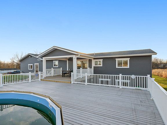 LIKE NEW! This incredible home boast 5 bedrooms, 3 Full baths, phenomenal daylight basement, covered patio, massive composite sun deck surrounding a beautiful pool and all the luxury finishes to make this home a must see. Located on 1.2 acres of spacious land you enjoy the benefits of a 2.5+ finished and heated attached garage, two additional storage containers that perfectly fit the modern farm style of the home and finishes. This sprawling ranch design is built to impress, just 23 min to Downtown schedule your visit today.