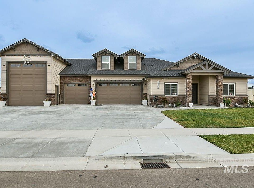Beautiful like new 3 Bedroom 2.5 Bathroom home with 3 car garage PLUS 46' deep RV Bay with 12x14 door. Open concept living area with a dream kitchen and large walk in pantry. Split floor plan includes primary with massive en-suite located on the main level. Huge bonus room with bathroom on second level. Located on a large corner lot in highly desirable subdivision just minutes from Lake Lowell and Red Hawk Golf Course.