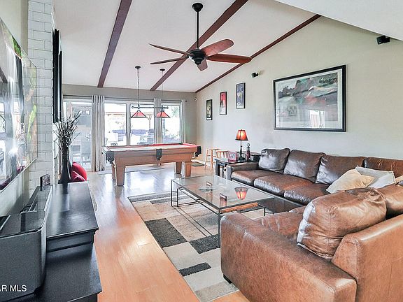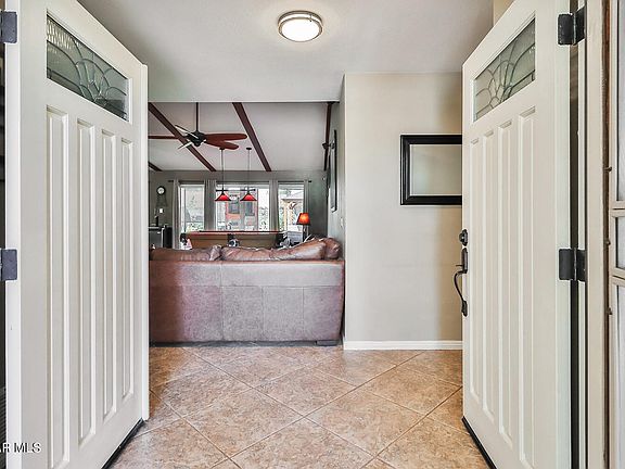 Living is easy in this fully upgraded, spacious four-bedroom house nestled in the heart of Moorpark in this desirable Peach Hill neighborhood. Spanning almost 1,800 SF this one-story home invites comfort and exudes peacefulness. With 4 bedrooms, 2 bathrooms, open flow floorplan and stylish upgrades, you'll enjoy a perfect setting for relaxing and entertaining. Thoughtful landscaping welcomes you to the front patio, perfect for a morning cup of coffee, overlooking the lush greenery of Peach Hill Park. Step through the double doors with etched glass features into a spacious open floor plan, where slate and wood like floors add a touch of elegance. Enter the family room, a cozy haven, with a white brick fireplace, ceiling fan, wood beam ceilings, and sliding door access to the outdoor living space.