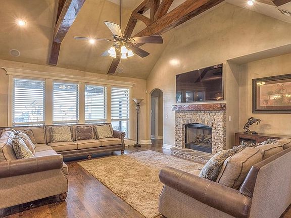 Extraordinary stone/stucco beauty in popular gated community w/view of neighborhood lake/fountain. Clubhouse/pool/jogging trail. So many upgrades. Luxurious amenities. FD study, mstr and guest down. 2 beds, theater/game up. Divided 3 car. Outdoor living/kitchen/fireplace. Amazing view.