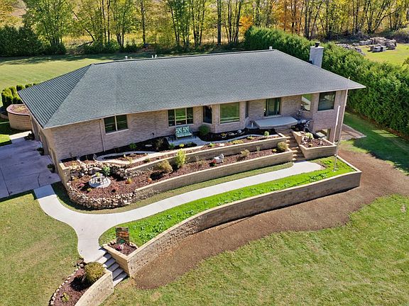 9 acres with a 3000+ sq foot home that was built in 2000.... 3 bedroom, 3 bath, 2 fireplaces, beautiful landscaping and stone walls, patio to fire pit area, huge rec room and bar in lower level with natural fireplace and access to outside are just a few of the features in this home. Attached 2+ car garage with additional 40x50 heated shop and another 30x50 heated garage. Newer roof in 2013, ac in 2020, water heater in 2019. Very private on dead end road. A must see home.