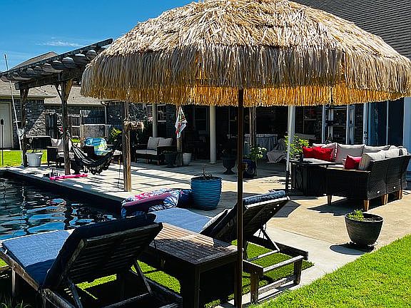 Custom built home offers open floor plan LOADED w/ design & detail thru-out: soaring & decorative coffered ceilings, crown moulding, wainscoting, recessed lights, exquisite bronze fixtures, hardwoods/ceramic tile, custom cabinetry & backsplash, granite counter tops, stainless appliances, custom stone stacked fireplace & more. Home feat: 4 spacious bedrooms w/ isolated master suite on main level featuring private luxury bath w/ 5 ft. tiled shower & Whirlpool tub, formal dining room, large family room, gourmet kitchen. French doors leading to covered patio overlooking privacy fenced yard. 3 car attached garage w/built in generator hook ups and storm shelter + 2 car detached Garage. Fiberglass pool with beautiful landscaping.