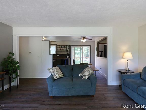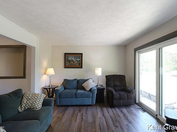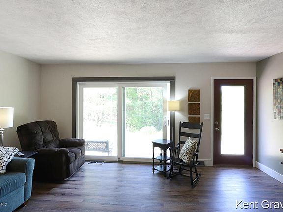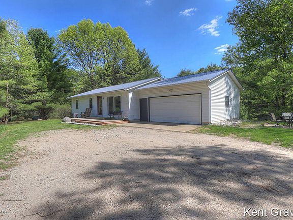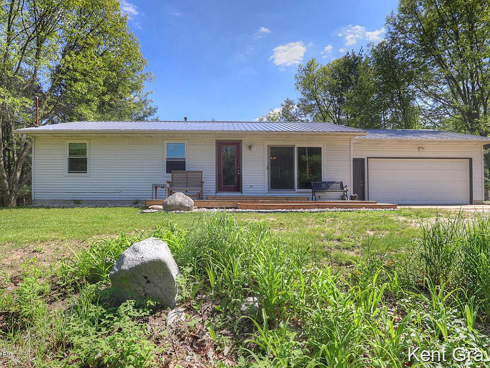 Beautifully maintained 4 bedroom, 2 full bath ranch on 10.14 acres in Gowen. Private setting and set back off 19 Mile Rd. Many updates- new roof and drive in 2017, water heater, windows, main flooring, kitchen appliances, garage door all in last 2 years. Two bedrooms and full bath on main floor. Huge deck looking out over a a beautiful natural setting. Walkout basement with family room, large bedroom and full bath. Privacy, acreage and natural beauty. This one has it all! You must get inside to appreciate this one!