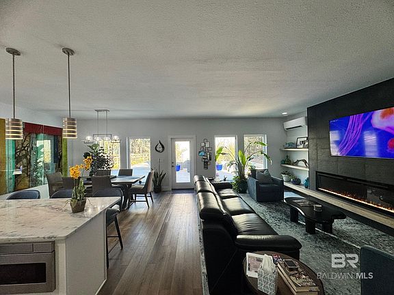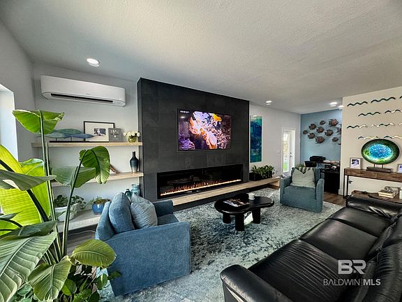 Welcome to this stunning, coastal, modern home located close to the serene shores of Perdido Bay. This meticulously designed one-bedroom, one-and-a-half-bath home offers 1,148 sq. ft. of living space, featuring exquisite custom tilework throughout and ample storage including a large pantry. The spacious living room serves as a perfect retreat with a cozy electric fireplace, while the open floor plan flows seamlessly into the chef's kitchen, which boasts a large island, stainless steel appliances, and luxurious granite and quartz countertops. In addition to the main home, this property includes a separate 600 sq. ft. guest house that has been framed for a one-bedroom ADU (plans provided), providing an excellent place for guests or an investment opportunity. With no HOA, this property is ideal for short-term rentals, long-term rentals, or vacation rentals. Notable features include lighted vanity mirrors with defoggers, a whole-house dehumidifier, 2x6 construction, stacked handmade subway tile, foam-insulated roof batten walls, casement windows, and hurricane fabric protection for all windows. This property is situated just a few blocks from the public beach, 5 minutes from the Lillian boat launch, 15 minutes from the sugar-white sands of the Gulf of America, and also located near Pensacola NAS, the VA Hospital, Gulf Shores, Orange Beach, and Foley. Don’t miss your chance to own a beautiful piece of the Gulf Coast! Buyer to verify all information during due diligence.