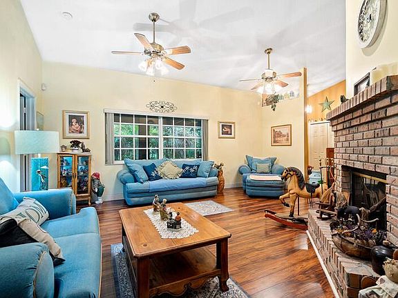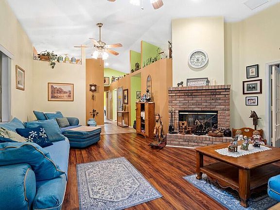 Country Gem. This 3200+ sq ft Home is Situated on Beautifully Manicured 1.16 Fenced Acre. Paved entry drive leads to side entry 2 car garage. Enter home from a large front patio(8x25), into a foyer entry. Large Living Room With Wood Flooring and Double Sided Brick Fireplace. Grand Master Suite with his and her walk in closets, Updated Master Bath. Open eat-in kitchen , Formal dining area with fireplace and family room. 25x14 Ac Game room with pool table. True split bedroom plan, laundry room inside by garage entry.