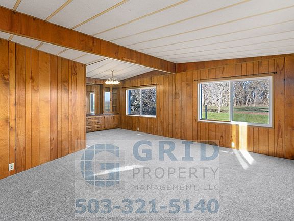 Available from Grid Property Management LLC: Excellent 3br/2ba manufactured home in a tranquil rural setting off Ballston Road outside Amity, Oregon. The master bedroom has an ensuite bath, and the two bedrooms are large in size and share a guest bathroom. The home's large living room and large dining room are off of the kitchen, there is also an informal eating area near the kitchen with a sliding glass door to the backyard. The home features a huge yard with a garden area, numerous fruit trees, and tall oak trees. This home has sweeping views of open farmland and the coast range. **Please note the home backs into an active duck hunting range.** Electric range, dishwasher, refrigerator, and washer/dryer in unit are provided. Heat source is a central pellet stove. Additional amenities include a double garage/storage area (this area is outlined in green in the attached photo), and a deck. Please note the storage shed in the backyard is not available for use. The water source for this property is a well. Landlord pays for garbage, water, and sewer. The tenant is responsible for electricity, landscaping in their designated property boundaries, and all other utilities. $2,000.00 per month, $2,500.00 fully refundable security deposit. To reserve the property, a tenant will be required to pay the household security deposit. The first month will be prorated. One-year lease. Proof of renter's insurance is required before move-in. This unit is not an Accessible Dwelling Unit. Non-smoking. Cats and dogs 20 lbs. and under are welcome (with exceptions upon landlord review). Maximum of 2 pets with a $50 rent increase per month for each animal and an increased deposit of $50 for each animal. Information deemed reliable but not guaranteed.