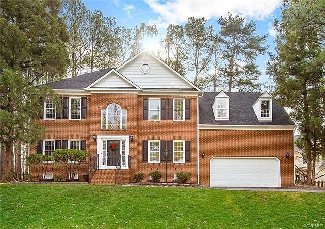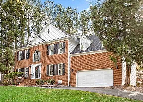 TAKE A LOOK AT THIS STUNNING CORNER LOT COLONIAL BRICK HOME in the Kensington Green at Wellesley subdivision! Walk in and find a gorgeous 2 story foyer, a formal LR & DR all w/custom MLDGs & rich HDWD floors. The family room offers built-in cabinetry, a brick wood burning fireplace & opens to an enormous eat-in kitchen w/a large open, sun filled eat-in area w/2 skylights, plenty of counterspace, wood cabinets, all white APPLs, a 6X3 pantry & steps away from the laundry room, a 5X5 half BA & access to the 25X22 ATT 2 car garage w/extra storage shelving. 3 bedrooms on the 2nd level share a 10X5 full hall BA, offer ample closets & BDRM 4 has a sitting RM attached that could be used as a 5th BDRM. The primary BDRM is spacious, has an ATT 14X10 BA w/DBL vanity & storage, an easy entry shower, jetted tub, separate toilet RM, a 10X4 WIC & 3X2 linen closet. NEW roof 2020, NEW dishwasher 2020, FRESH interior paint 2020 (1st level, 2nd level hallway, primary BDRM, BA & WIC), FRESH exterior & 14X12 deck paint 2020, NEW driveway 2018, zoned for the top Henrico County Public Schools & close to all Short Pump dining, shopping & entertainment. SCHEDULE YOUR TOUR TODAY!