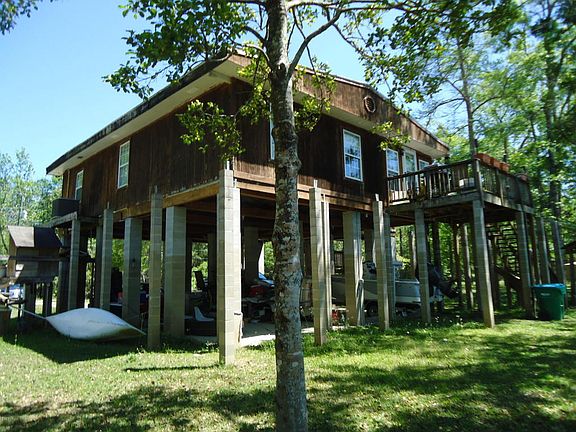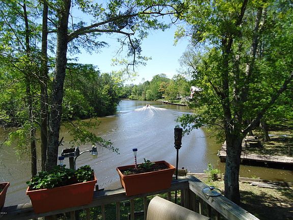 Nice raised home on the river located on a large lot. Approximately 150' on the water! Large concrete area under the home for additional storage, parking, etc. Lot next door is also available which is great for gardening or room to grow or possibly build another home on the additional lot.