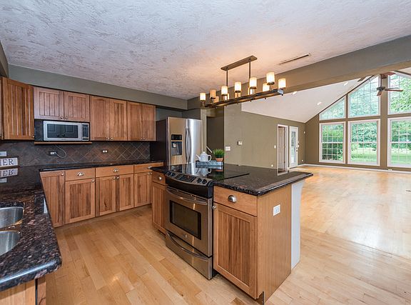 One of a kind home situated on a gorgeous 1.25 acre lot. Hardwood flooring greets you as you enter the formal living area, which opens to the expansive great room. This space is truly an entertainers dream, from the custom fireplace, hardwood flooring, soaring ceilings & spectacular views of the yard, to the spacious kitchen w/granite tops & expansive island...you will not be disappointed. The main floor master suit offers a nice quiet place to unwind. The 3rd bedroom is located on it's own floor with private bath, perfect for out of town guests as well. The 4th bedroom also has it's own wing of the home and features a 1/2 bath and bonus room, which would also make a great 5th bedroom. Bring the party outside! The large newly stained deck, surrounding the above-ground pool, w/stunning views in every direction, is perfect for hosting all your outdoor gatherings or just take it all in and relax. The 3 car detached garage has enough room for all your toys! Welcome Home!