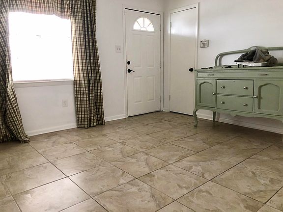 Open and spacious and FRESH PAINT throughout! Formal dining room and also a breakfast nook area. Large den and a separate formal living room. Walk in pantry and laundry room. No carpet. No stairs. No worry of flooding. Spacious fenced in back yard with TWO sheds wired with electricity. A huge patio with pergola off of the den. A smaller patio off of the master that would be the perfect place to have your morning coffee or cup of tea in the evening. Tons of parking and easy in and out with the circular driveway. The location is super convenient! With easy access to I-10 and Highway 49, you can reach all of your shopping, beach, entertainment, and casino needs easily. This home has only had one owner for over 30 years! (Furniture has been removed; photos for visualization only.)