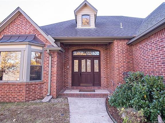 Custom home on 1 acre fenced lot, mature trees, and backs to green belt in coveted Deer Run Estates in Bixby. 2 story w/designer tile on all 2-1/2 bathrooms, hardwoods, updated kitchen w/Granite, vaulted ceilings. Upstairs has 2 beds - 1 w/an office or play area. Huge family room has wet bar, fireplace, and ample storage. Detached garage could be a great shop or teen hangout. Over-sized 2 car garage has storm shelter and work/storage area. Bixby Schools!