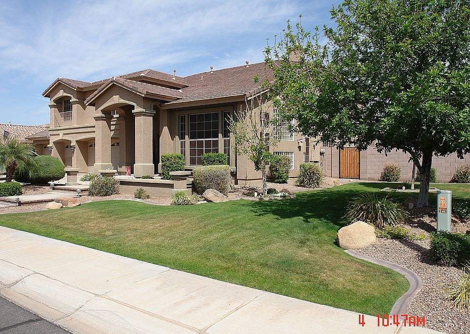 Spacious light-filled home, formal entry with designer-double Iron security doors, living room with glass-block fireplace & formal dining room, glassed-in room dividers through, game room with pool table area, whole home-surround sound with patio-pool area speakers, over-sized covered patio with out-door cook-center with natural gas BBQ, fire-pit and raised planter, plantation shutters in all bedrooms & game room, 4 car garage with utility sink, work bench and built-in cabinets + 220V, large Master B/R with his & hers walk-in closets and two-sided bed/bath fireplace, family room with wet bar & mirrored & glass shelves, built-in entertainment center with matching library area. gourmet kitchen includes island 5 burner gas-cook top, granite counter tops and upgraded cabinetry, large upgraded double ovens, with large family-sized eat-in area. Redesigned lighted, stepped paver entry and front patio area with mature landscaping and trees. Neighborhood Description close to excellent shopping, dining and professional sports venues. Easy access to freeways and metro Phoenix areas. Gated, safe & secure community with excellent, long-term neighbors and neighborhood stability. Neighborhood parks with youth recreation and green-belt areas.