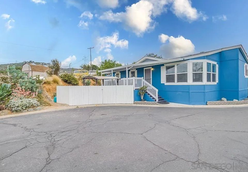 Welcome to your new sanctuary nestled in the Los Coches community in El Cajon. This beautiful 3-bedroom, 2-bathroom manufactured home offers the perfect blend of comfort and convenience with breathtaking views. Built in 2015 and located in a quiet cul-de-sac ensuring privacy and minimal traffic minutes from the 8 highway, this is an incredible opportunity to own a slice of paradise in East San Diego. As you enter you’re are greeted with a massive living space and open kitchen concept. The kitchen includes an adorable kitchen nook perfect for the morning coffee or just conversing with those you love. With 3 bedrooms and 2 full bathrooms this is the perfect starter home for a family. Unlike most manufactured homes, this one includes a backyard with enough space for a large outdoor table with 6 seats and a collapsible umbrella as well as a large sofa and fire pit. Whether you like to entertain in the backyard or just enjoy sitting outside on the porch you have ideal space for both. The beautiful landscape comes with gorgeous plants, exotic succulents and low maintenance. This property is one of a kind.