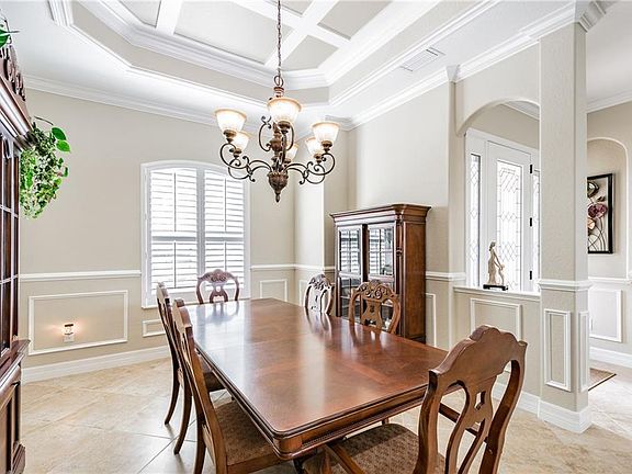 - Interior Features: Ceiling Fans(s), High Ceiling(s), Master Bedroom Downstairs, Crown Molding, Walk-In Closet(s), Window Treatments, Open Floorplan, Solid Surface Counters, Solid Wood Cabinets, Eating Space In Kitchen, Wet Bar, Built in Features, Tray Ceiling(s)