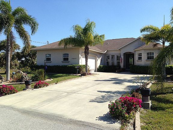 This house is located on the wide Santa Cruz waterway in South Gulf Cove in Charlotte County Florida. This deep water canal is approximately 7 feet with no bridges to contend with so it is great for both power and sailboats. The house has a Southern exposure (shade in summer and sun in the winter) which has a dramatic impact on the heating and cooling costs. This orientation offers a pleasant shaded area on the patio during hottest time of day and allows plenty of light to come through the house. Looking out from the patio, you see a wooded view of a County-owned preserve which offers a very serene and private atmosphere. The lot size is 11,157 sf and is pie shaped 60 x 120. The dock is 40ft with additional pilings for bow and stern. This is a quality home built in 2006 by Sunquest Homes, a premier Boca Grande homebuilder. It has a very open floor plan with 3 sets of 8’ sliding glass doors. The glass door in the Living Room is Pocket Recess which offers total opening space to the patio. Patio is screened in (New Screen April 2020). It is 40x15 and partially covered. Out on the patio, there is a Jacuzzi and warm water shower. Exterior Construction is Block and Stucco. Foundation Slab is built 10 ft above sea level and the Flood Zone is AE. Floor covering is 19” tiles throughout except for 2 bedrooms which have Berber carpet. Ceilings are 10 ft or higher in areas and there are 3 tray ceilings in the home with 6 Ceiling Fans. Walls all have round corner edges and other trim. Gibraltar covering on all window sills also. A/C is TRANE central and Heat is electric. Water Heater is a Rheem 50 gallon. Kitchen has top-quality Gibraltar Solid Surface Kitchen Counters with Stainless Steel Appliances. There is an Eat-In Space in the Kitchen with a Bar for seating up to six. Garage is oversized 2.5 Car and 638 sf. Driveway is larger than normal to accommodate parking of additional vehicles. Separate Laundry Room with Utility Sink. Master Bedroom is spacious and contains two separate walk in closets. Master Bath has a doorless Glass Shower with 2 entrances and 2 showerheads. It contains a his and hers vanity and a garden soaker tub. Landscape has curbing and river rock and there are mature trees and shrubs. We are the original owners of this property and it is well maintained and move in ready.