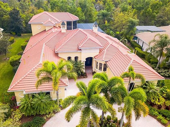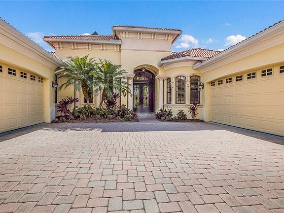 Luxurious Florida living awaits in this stunning home located in the elegant, highly sought after, community of Lakewood Ranch Country Club. This 4 bed/4.5 bath home with 4-car garage boasts nearly 5,000 sq. ft. of upscale living and offers the opportunity of a 5 bedroom home including a bonus room and study. Enjoy utmost privacy and serenity on a private street overlooking a conservation area. Entering the paved circular drive, you are greeted by pristine lush tropical landscaping. An 8 ft. iron and cathedral glass front door sets the tone for the remarkable home. This classic yet stylish home features elegant tray ceilings and crown molding throughout, handcrafted ceiling beams in the family room and kitchen, a formal living room coral stone fireplace, a magnificent aquarium glass window overlooking the pool and preserve, and much more. Ideal for entertaining, the home features a chef's gourmet kitchen with Monogram appliances and custom antique cream cabinets with chocolate glazing. Enjoy weekends in the wonderful lanai overlooking the pool and extended sunning area. The space includes a complete outdoor kitchen with Lynx grill, a coral stone fireplace, and pecky cypress ceilings. The bonus room upstairs features a balcony overlooking the conservation area and would make a great game room or secondary office. Upgrades include newer HVAC system, all new pool systems, new paint, new carpet and a new pool screen enclosure with clearview design and LED lighting (2017.) Make this beautiful gem yours today.