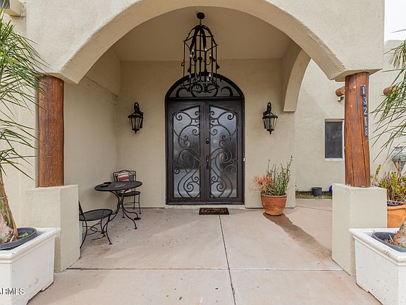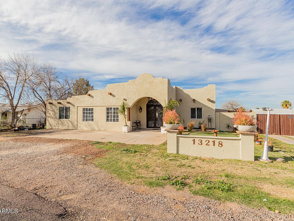 Home, sweet home! Charming Santa Fe style home with a guest quarter is looking for a new owner! Come inside through the double iron wrought front door to discover soothing palette, wood-look floors, & a luminous great room. Beautiful kitchen boasts SS appliances, stylish backsplash, track lighting, an island w/breakfast bar, & plenty of cabinets. Have a good night's sleep in this primary suite showcasing a walk-in closet & a private bathroom for your comfort. Don't miss the guest quarter, including a living/dining area, kitchen, bedroom, bathroom and laundry room! Contemplate endless blue skies in this serene backyard providing a relaxing covered patio, small animal corrals, synthetic grass, multiple seating areas, a detached car garage, & not 1 but 2 RV gates. What are you waiting for?!
