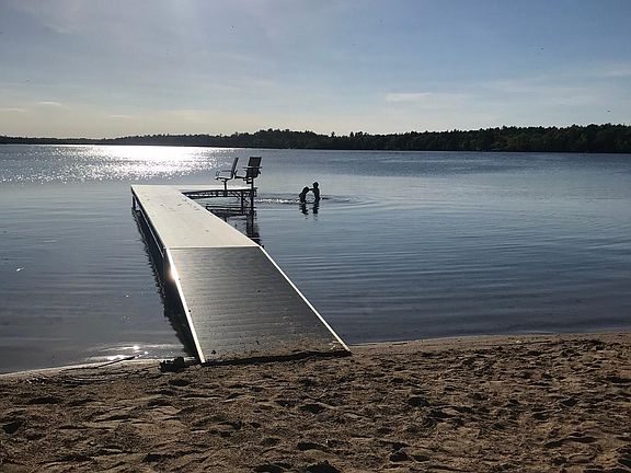 Lakefront property on 2 acres. Sandy beach, clear water. Playground, large lakeside deck and patio. Large attached mother-in-law suite. Fireplaces, extra loft space, eat in kitchen and dining room. Open floor plan. Excellent Wi-Fi to work from home! Sleeps 10+. Rental price includes utilities. Cleaning service available for extra fee.