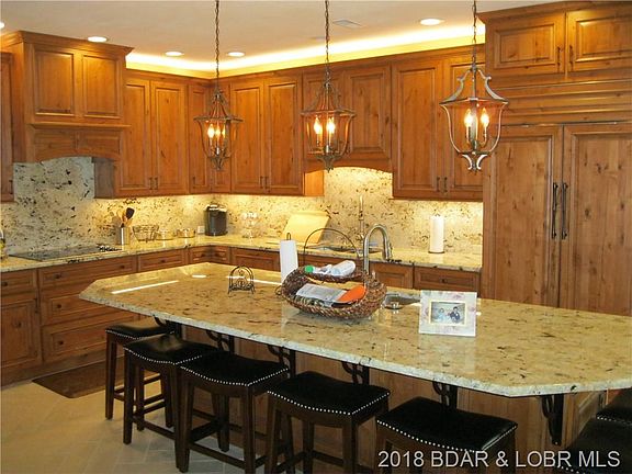 STUNNING LAKEFRONT HOME WITH ALL THE HIGHEST QUALITY FEATURES!!! Home has recently been updated with an upscale gourmet kitchen with Pecan cabinets, Kitchen-aid appliances, and granite countertops. The home features a master bedroom with a new bathroom with a walk-in shower for two and separate vanities. There are 4 other bedrooms and 3 very unique bathrooms. The living room and vaulted family room both have wood-burning fireplaces. Other features include an level lot with just a few steps to the dock, an oversized 2-car garage, covered deck and fenced in yard for kids or pets. There is a separate building that can be used for a studio, gym, office or a man/woman cave. The huge cruiser dock was purchased this year and is available to purchase separately. Furnishings are negotiable. Note 5th bedroom has no closet or can be used as office. All this in a wide cove with a big view. Please take a look to really appreciate all the quality.