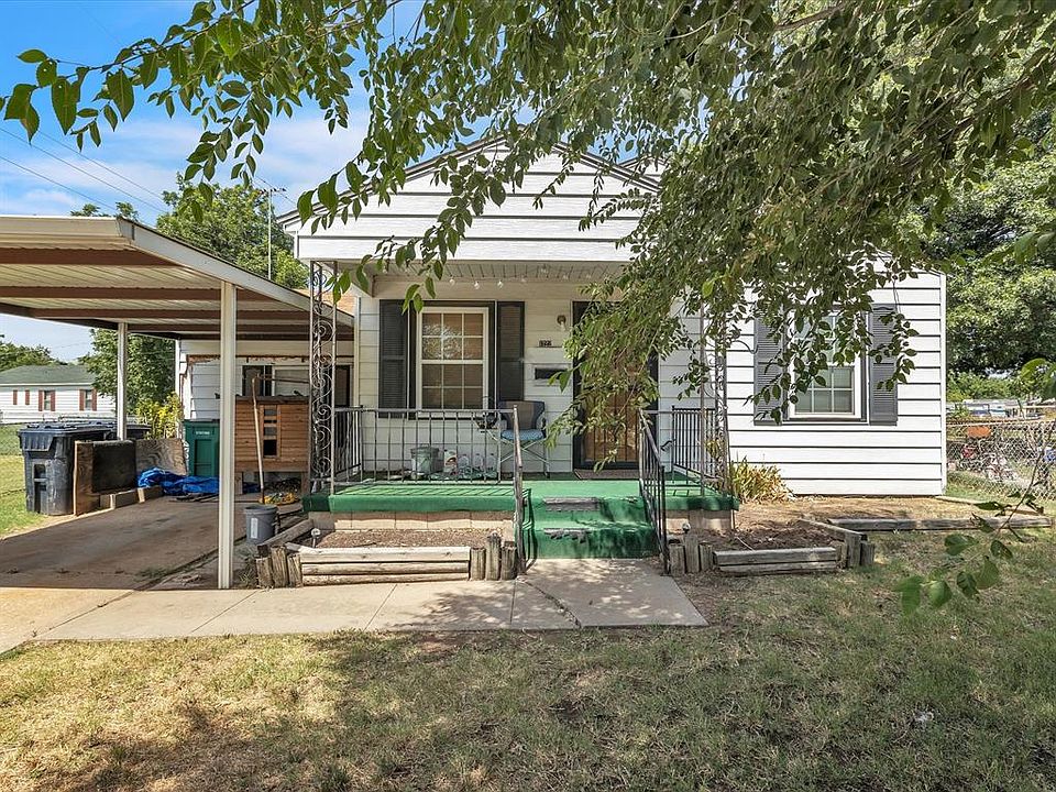 Charming home in South OKC with three bedrooms and one bathroom. This home features a converted garage that now serves as a den or second living room. The kitchen opens to the dining area, creating a welcoming atmosphere for meals and entertaining. The property sits on a generous 0.2-acre lot, complete with storage buildings in the back and a carport for parking.