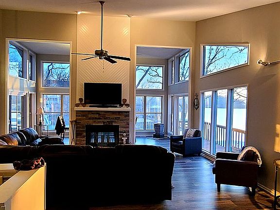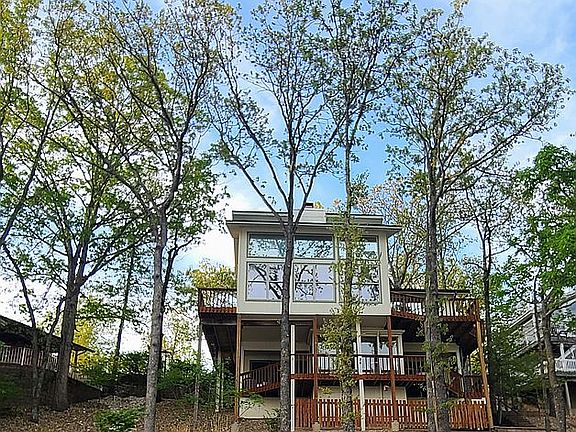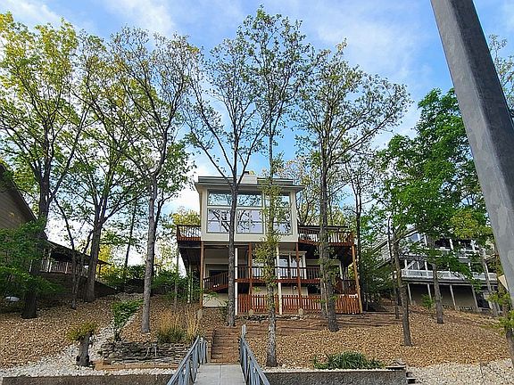 Osage Beach waterfront home in a great cove with main channel views! This recently updated home has 101 feet of good deep water conveniently located in the heart of Osage Beach. Fresh paint, flooring and counters all within the last 2 months. In addition HVAC was replaced 7 years ago and fireplace was re-worked in 2014. As soon as you enter the front door you are greeted with soaring ceilings and walls of windows to enjoy the beautiful trees and spectacular views. The lot is filled with mature trees including countless dogwoods, redbuds and even has a 3 tier pond complete with fish. Open floorplan with a huge living area that is separated by a fireplace making 2 great spaces. It is an easy walk to the 2 well dock with plenty of room for a larger dock if desired. With good parking, a two car garage, and a location that is unmatched, you won't find anything more attractive at this price. Home is under contract with a 72 hour kickout, please continue to show.