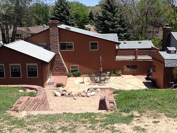 Pleasant Valley Tri Level that backs right up to Garden of the Gods Park! Updated with newer roof, windows, paint. An addition was added and the kitchen totally redone with abundant, custom, solid maple cabinets, soft close, dove-tailed drawers, gorgeous slab granite counters, double oven gas range. Island with 2nd sink and disposer. Both baths have been totally updated. Floors are either porcelain tile or oak hardwood. The backyard is a dream with a waterfall and patio to enjoy the awesome, private location.