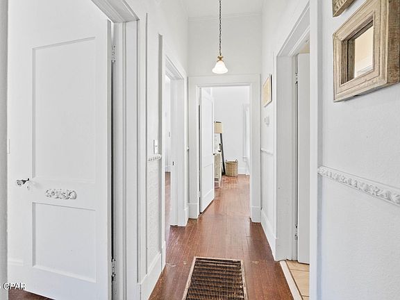 Charming and full of character, this 2-bedroom, 1-bath cottage sits gracefully on a desirable corner lot, offering the perfect blend of vintage appeal and modern comfort. From the moment you arrive, the inviting front porch and cheerful exterior details welcome you home. Step inside to a bright and welcoming dining room that flows seamlessly into the spacious living area, where tall ceilings, large windows, and original hardwood floors create an open and airy feel. The kitchen sits just beyond the living space, offering plenty of cabinet storage and natural light, with access to an enclosed back porch. Each bedroom offers generous space and plenty of natural light, while the full bath retains a touch of vintage character paired with modern updates. Outside, you'll find even more to love! The backyard features an in-ground pool waiting to be brought back to life and enjoyed again, along with a storage building for your tools or hobbies. Located in a quiet, established neighborhood near the heart of town, this home offers convenience to schools, shopping, and dining while maintaining the peaceful feel of small-town living. Whether you're looking for your first home, a charming downsizer, or an investment opportunity, this delightful cottage is ready to welcome its next chapter.