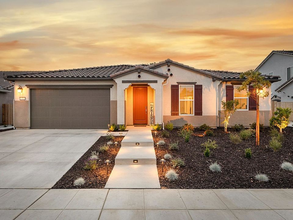 Welcome to this gorgeous 2021 built Century Home with beautiful modern custom upgrades, a tile roof, low maintenance yard, and a 16 panel OWNED solar system, in beautiful Clovis. You will be greeted by a spacious foyer with upgraded luxury vinyl plank flooring that extends throughout the main living areas of the home. The open-concept living room opens up to the gourmet kitchen, which features upgraded 3cm quartz countertops and backsplash, under cabinet lighting, a large island with an upgraded chef sink, walk-in pantry, & stainless steel appliances. The living and dining rooms overlook the beautifully landscaped low maintenance backyard that features Synlawn synthetic grass, custom modern cement pads, a covered patio, electrical wiring for a spa, & a pre-run gas line for an outdoor kitchen or fireplace. This floorplan has some great features such as wide hallways, & a separate hallway entrance to the master suite (which is secluded from the other three bedrooms). The bathrooms have upgraded countertops and backsplash, & the laundry room has under cabinet lighting & custom built countertops that provide a great workspace for folding laundry. The garage has epoxy flooring and the garage walls have been taped, textured, and painted. Tankless water heater, upgraded carpet and waterproof pad, new light fixtures in the bathrooms, new fans, blinds and hardware installed, and the list goes on! Over $100k spent on upgrades and amenities on the gorgeous like-new home!
