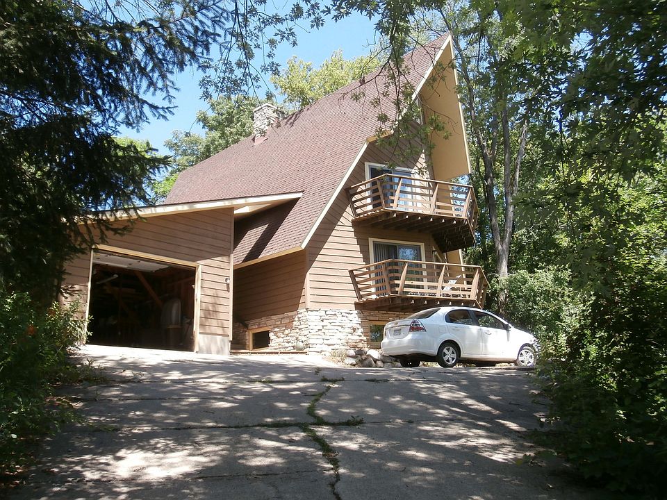 Stunning Custom Scandinavian A Frame 3BR/2BA Westside House, Hilltop Location on cul-de-sac--no through traffic quiet, private, rear lawn with deck and natural wooded back lot walk to Brennan's produce market (1 block), Spring Harbor Beach and Marina on Lake Mendota (4 blocks) 5 miles from University, 1 block from direct bus line to campus spacious, open design, skylights high-beamed ceiling and hardwood floor in living room/dining room large natural stone fireplace custom woodwork and cabinetry granite countertops in kitchen, Bosch gas/electric convection range tiled floors in kitchen, foyer, and bathroom; carpeted bedrooms and entertainment room 3 decks, front and rear huge closets; extra storage space cedar closet for your woolens and furs washer, dryer, dishwasher, refrigerator, disposal, all appliances furnished gas furnace, hot water heater, dryer, range central air conditioning toilet with a view! 3,264 square feet (2,720 finished + storage/work areas) large attached 1 car garage + off-street parking pad zoned for Crestwood Elemetary, Jefferson Middle, and Memorial High Schools owner pays water, sewer, trash fees; tenant pays for remaining utilities (electricity & gas)