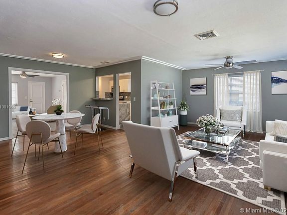 Fantastic location in Hollywood Lakes just minutes to Northlake and the Golf Course, 2 Bedroom, 2 Bath plus a Den home. This residence features original hardwood floors in the living, dining area and the two bedrooms, new porcelain flooring in kitchen and den. Updated kitchen with white cabinetry, beautiful gray and white quartzite countertops, stainless steel appliances, and pass through to the dining area. The bathrooms are designed to provide a spa-like experience along with crown molding accents. Den with a closet can be configured as a third bedroom. The exterior features a 1 car garage with large driveway, oversized screened in back patio, perfect for entertaining! Close to the famous Hollywood Boardwalk, Beaches, West Lake and Gulfstream Parks, Aventura, Shopping, and Dining.