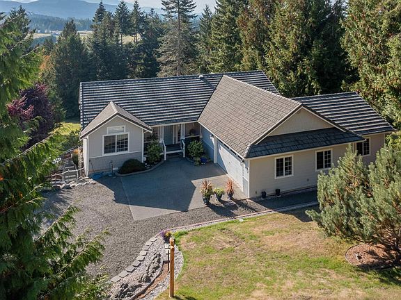 Single-level living w/ Olympic Mountain views on Bell Hill! Flowing floor plan, vaulted ceiling & big windows fill the home w/ abundant natural light. Main suite separate from other rooms, which both have sleek built-in closet storage. South-facing room has murphy bed & custom desk for a perfect, easily convertible guest room/office. Bonus den makes 2 amazing potential home-office spaces, both w/ incredible views. Enjoy the best of Sequim summer sunsets from the deck & backyard paradise w/ terraced garden.