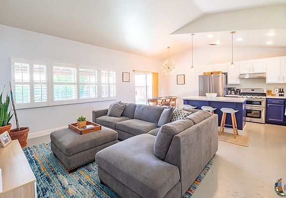 AMAZING gem in the Victoria's! When you walk in, you will feel like you are walking into a custom built home. Starting in the kitchen, you will find stunning custom refinished cabinetry, quartz countertops, island with breakfast bar, undermount sink, full height subway tile backsplash, custom pendant lights, and a top of the line stainless Maytag double oven and a matching stainless hood vent. The home features painted concrete floors throughout with diagonal set laminate flooring in the bedrooms and tile flooring in the bathrooms. The backyard is fully landscaped and has a HUGE full length covered patio with ceiling fans and stamped concrete. Other great features include a BRAND NEW AC last summer, custom painting throughout the interior, refinished cabinetry in the bathrooms with custom hardware knobs and pulls, custom light fixtures, window coverings throughout, extra concrete on the side of the home, an alarm system and much more. Must come see to appreciate all of the detail