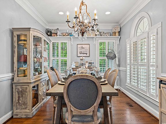 Luxury Living with Deeded Boat Dock on the Waterway! Welcome to this exceptional 4-bedroom, 5-bath custom-built, raised beach style home, nestled in an exclusive gated community. This hidden gem not only boasts a stunning residence but also provides the exclusive privilege of a deeded boat dock on the intracoastal waterway, removing the inconvenience of trailing your boat to the water. Meticulous renovations with detailed double crown molding, High ceilings and beautiful hardwood flooring throughout. Newly installed French doors leading to the covered porch with a wood-burning fireplace, Recessed lighting, ceiling fans, and a view of the newly installed greenhouses and landscaping. This bright kitchen offers white cabinets, Corian countertops, and newer stainless-steel appliances, a breakfast counter and ample storage. Enjoy an open floor plan connecting the kitchen to the attached living room and a Graceful formal dining room with a pocket door for easy access. Two master suites, one on the main level with double vanities, a whirlpool tub, and a separate shower. Second master on the second level with an oversized, custom walk-in closet. Additional oversized bedroom with a walk-in closet and private bath on the second level. This outdoor Paradise has an impressive heated and cooling salt-water pool with a family-friendly slide, upgraded Cyclonic filtration system, Separate lighted hot tub and two outdoor televisions. This fenced backyard creates a private oasis. There are two separate garages, with space for a golf cart, ample storage for holiday decorations, an extra bedroom and living space on the first level, ideal for a mother-in-law suite, man cave, or office. HOA takes care of landscaping. Easy access to the Grand Strand's offerings: beach, golf courses, restaurants, Market Common, and shopping. Proximity to grocery stores, banks, medical centers, and more. Square footage is approximate, with additional square footage added to the lower level. Buyer and buyer's agent responsible for verifying square footage and HOA information. Explore every detail with our 3-D VIRTUAL TOUR and property reel. This residence is a masterpiece, seamlessly blending comfort, style, and waterfront luxury. Schedule your viewing and step into your dream home at this reduced price!