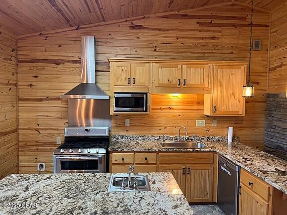 This is an excellent opportunity to own a stunning 2019 Log Cabin, situated on over 3 acres of land, complete with charming porches, spacious pole barns, and ample room for exploration or entertainment. The interior is truly impressive, featuring beautiful knotty pine throughout, exquisite granite countertops, pristine stainless steel appliances, as well as bamboo and stone flooring. This home is turn-key and move-in ready, so do not miss your chance to acquire this exceptional property.
