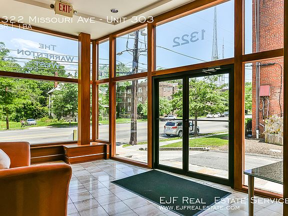 SCHEDULE A SHOWING ONLINE AT: showmojo.com/lh/0a19b5503d TO SCHEDULE A VIEWING: CALL or TEXT 202-759-7678 Property Address: 1322 Missiouri Avenue NW Unit 303 Washington, DC 20012 Neighborhood: Brightwood Park Availability Date: Now Monthly Rent: $1,450,mo for a 2 Year Lease, One Year Available at $1,550/mo Utilities Included: Water, Sewer & Trash Tenant Responsible For: Electricity, Gas, Cable, Internet, & Phone Square Footage: 719 Square Feet Building Amenities: Secured Entrance, Storage Unit Included In Rent, Close To Metro, Rock Creek Park Close By Bedrooms: One Large Studio Bathrooms: One Bathroom Deposit: One Month's Rent Application Fee: $50 Per Person Parking: One Parking Space Included in Rental Payment Pets: No Pets Allowed Move In Fee: Tenant Responsible for Fees Brightwood Park is one of the most up and coming neighborhoods in DC. Enjoy easy access to the metro on Georgia and Missouri Avenues NW. Bus access is out front of the building. Short walk to Rock Creek Park, a Wal-Mart is close by, and only a 10 minute or less drive to Downtown Silver Spring and/or Friendship Heights. Welcome to 1322 Missouri Avenue NW. This sleek huge studio has a large bathroom with a sinking tub. Cherry Hardwood Flooring throughout with a huge WD and Closet area.One parking space is included in the rental price! EJF Real Estate Services Inc. 1428 U Street NW, Washington, DC 20009 Office: 202.537.1801